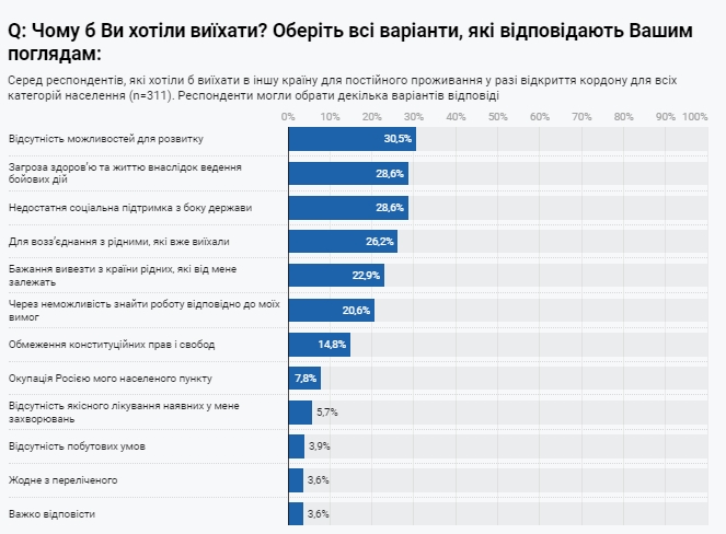 Причини, які спонукають людей задумуватися про виїзд, також заслуговують на увагу. Серед найпоширеніших причин названі: