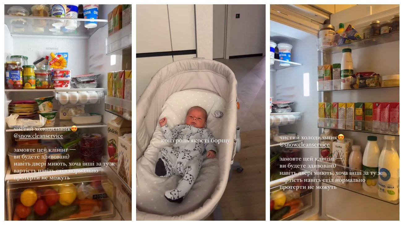 Не менш цікавим виявилося содержоме холодильника Остапчуків. Після прибирання, яке зробили професіонали, Катерина показала, як виглядає їхня «псковна», де все щойно організовано. Тут можна знайти безліч свіжих овочів, сиру, соків і навіть десертів. А ось продукти на кшталт курячих яєць і томатної пасти — це вже стандарт для будь-якої української родини.