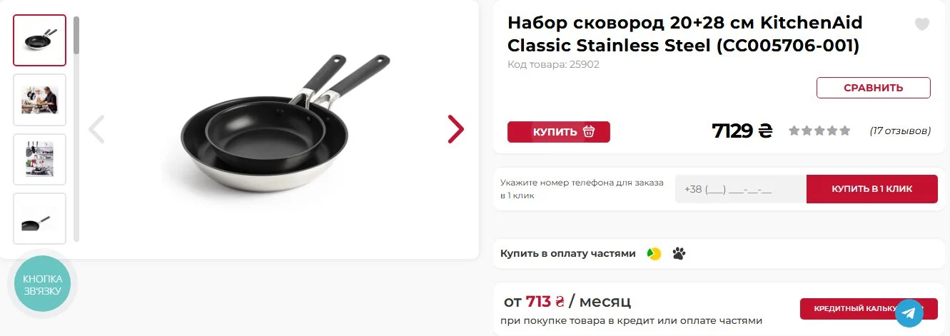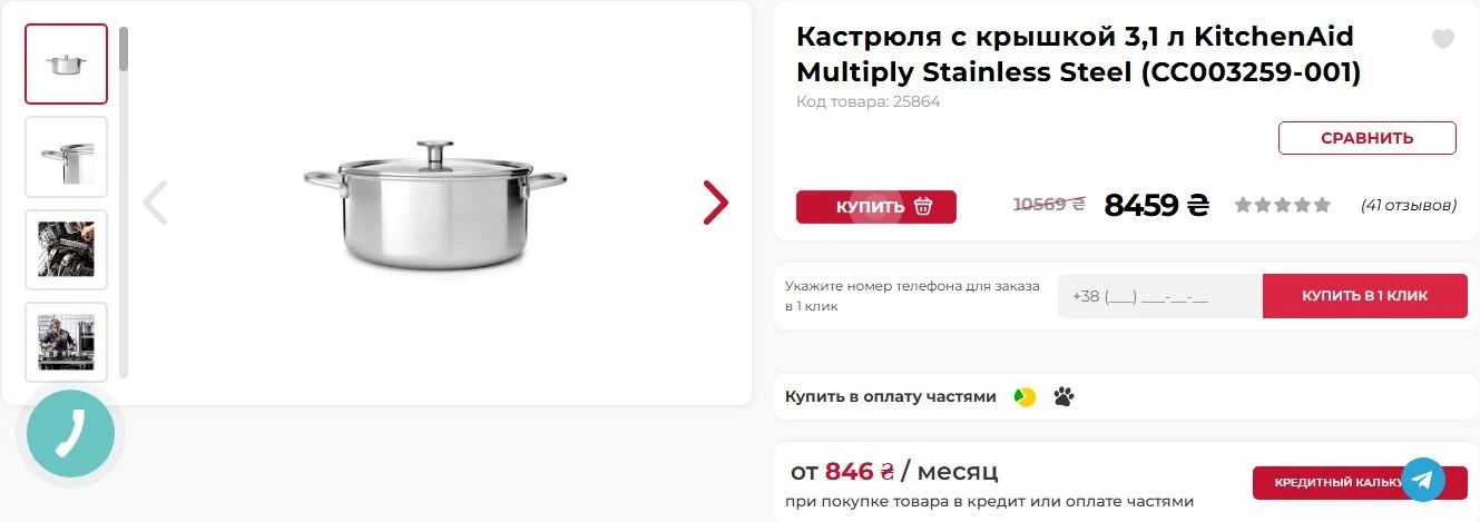 Однак, таке оновлення кухні обійшлося недешево. Як вдалося з’ясувати, вартість набору пательнь, обраного Полтавською, перевищує 7 тисяч гривень. Ціна однієї з каструль об’ємом 3,1 літра, придбаної за акційною пропозицією, склала 8459 гривень, хоча її початкова вартість становила 10569 гривень. Друга каструля, більшого об’єму – 5,7 літрів та діаметром 24 см, – була придбана зі значною знижкою: замість 7369 гривень Катерина заплатила 2949 гривень.