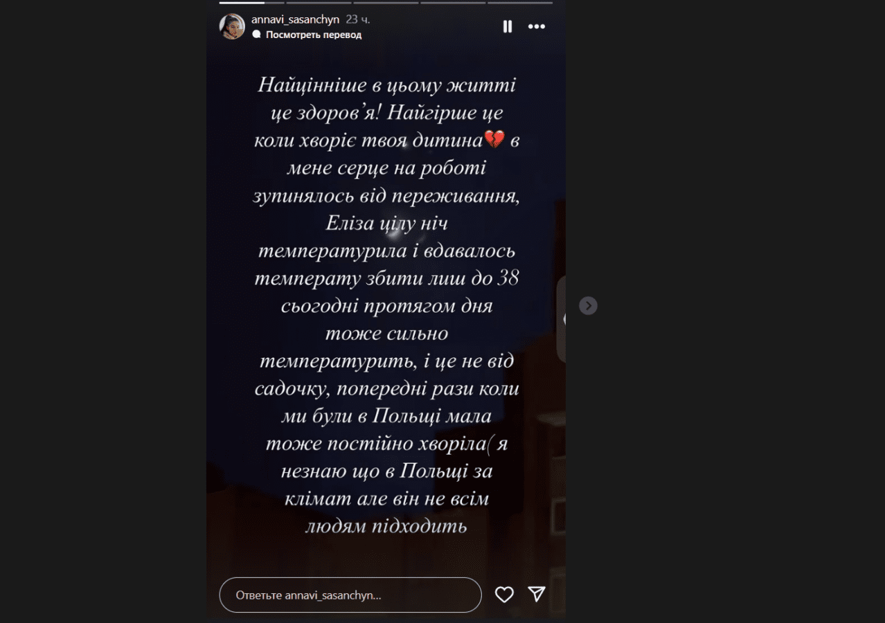 Іванна намагалася знайти підтримку у соціальних мережах, публікуючи деталі їхнього життя в новій країні. Однак самої нещастя сковувала тривога: як тільки донька знову почала відчувати себе погано, Іванна вже думала про лікарню. Вона відкрито зізналася, що нерви починають здаватися.