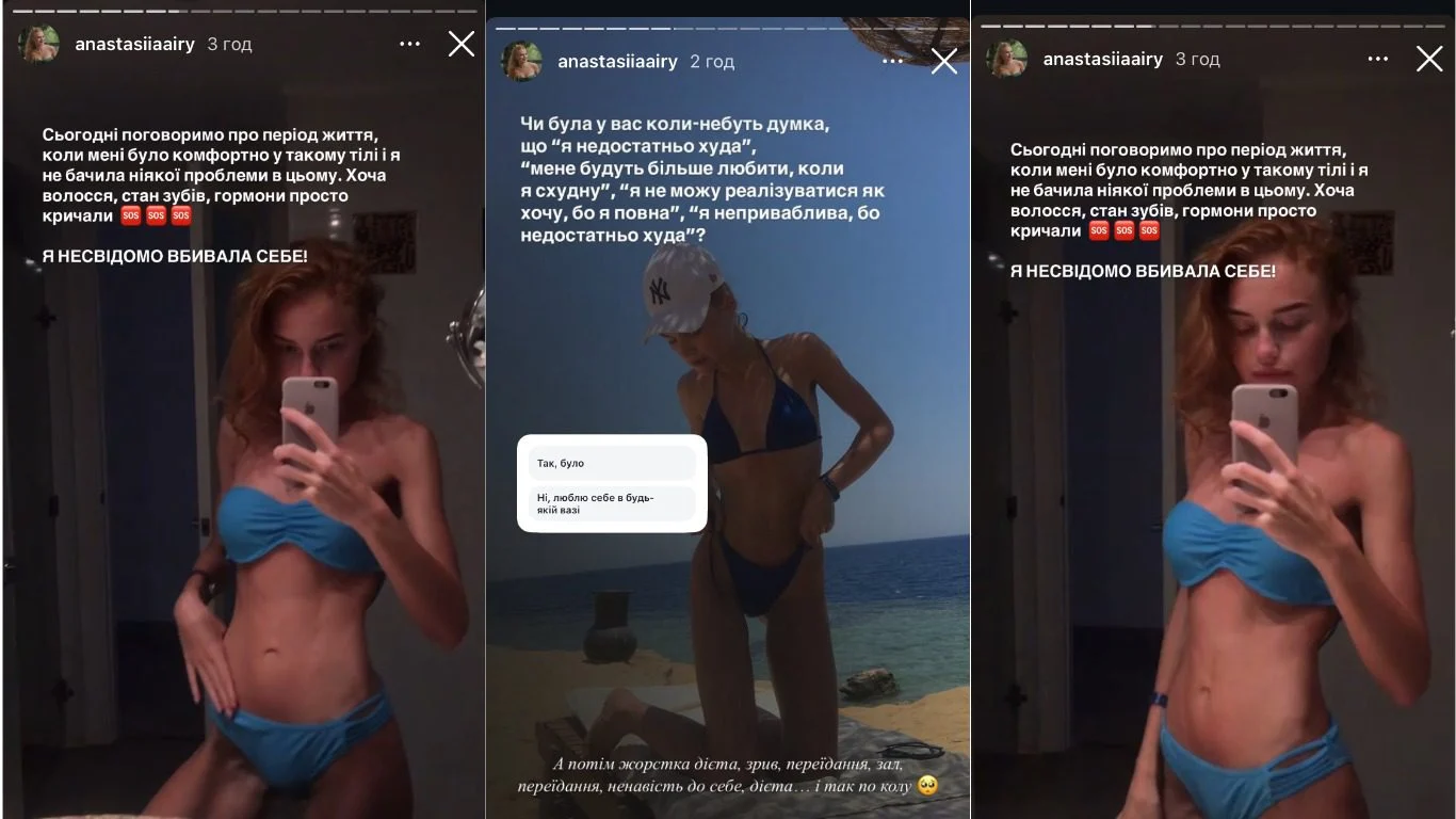 Відверто кажучи, це був непростий період для Анастасії. За її словами, тоді вона несвідомо завдавала шкоди власному здоров’ю, але відмовлялася зупинятися, перебуваючи в полоні власних міркувань. Ймовірно, без підтримки та професійної допомоги, вона б не змогла знайти сили для боротьби.