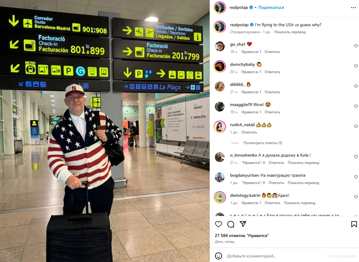 Не так давно Потап опублікував нову фотографію з аеропорту, стоячи на фоні зали. І з цього моменту розпочалася жвава дискусія серед його прихильників у коментарях.